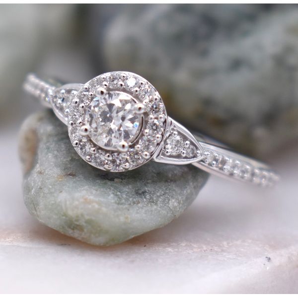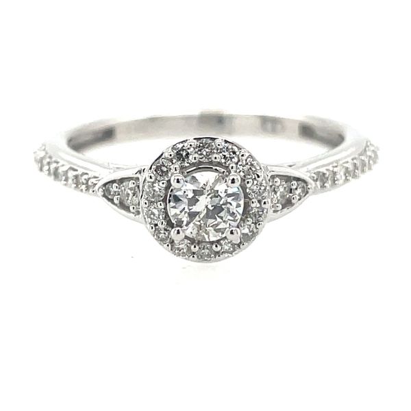 14k White Gold 1/2 Carat Total Weight Diamond Halo Ring Image 2 Jones Jeweler Celina, OH
